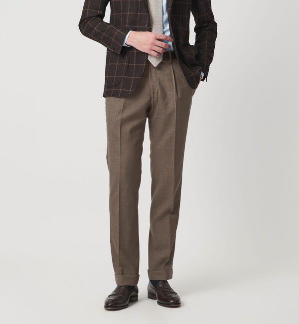 ビジネスからセレモニーまで、幅広いシーンで活躍する正統派スラックス■デザインワンプリーツ仕様のスッキリとしたテーパードラインが特徴のウールスラックス。プリーツが入ることでクラシカルで上.. |