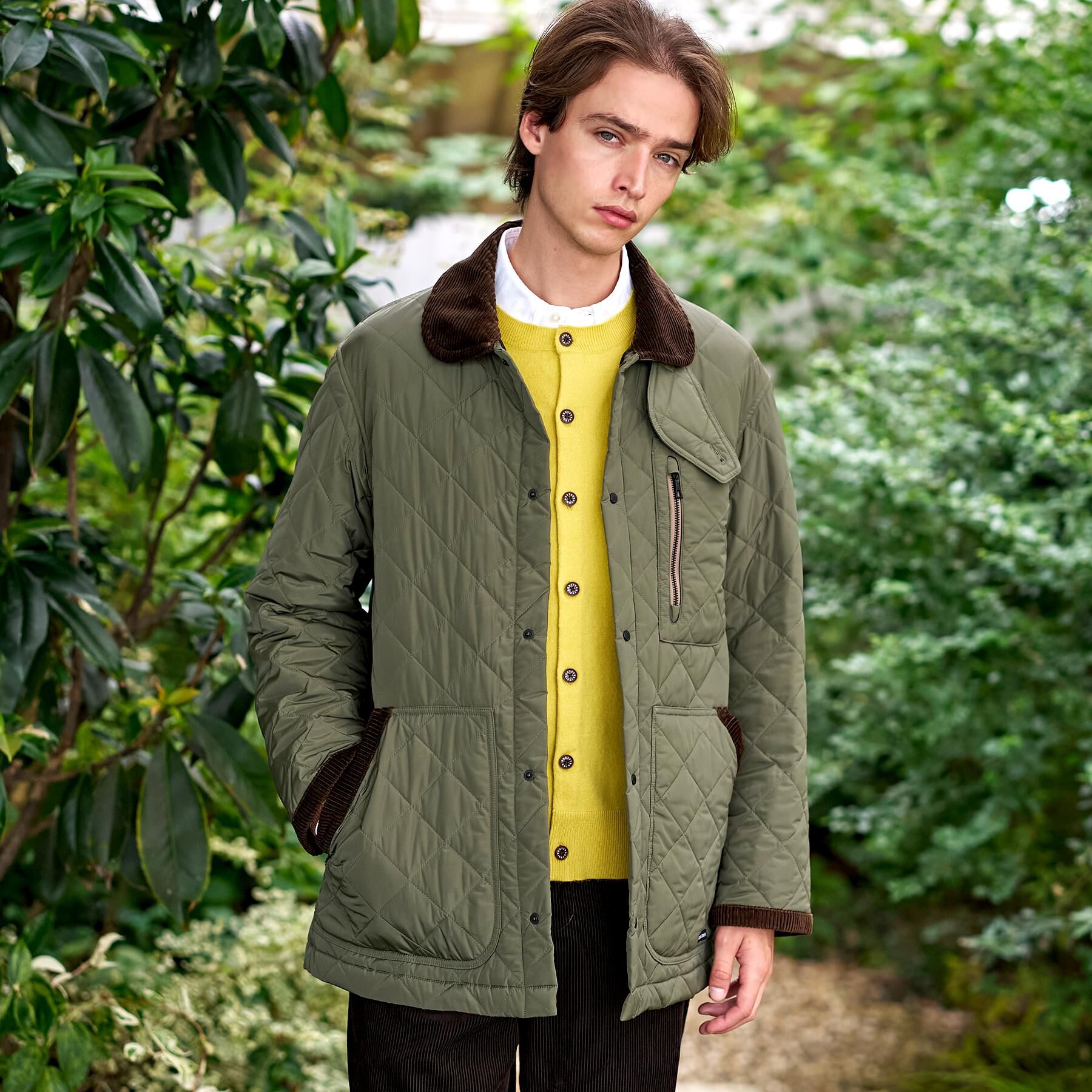 《良質感のあるファブリックにコーデュロイの衿がアクセント!ビジネスシーンにも対応できるキルティングアウター》●美しい発色と滑らかなタッチにこだわったジャパンメイドファブリック●撥水性が.. |