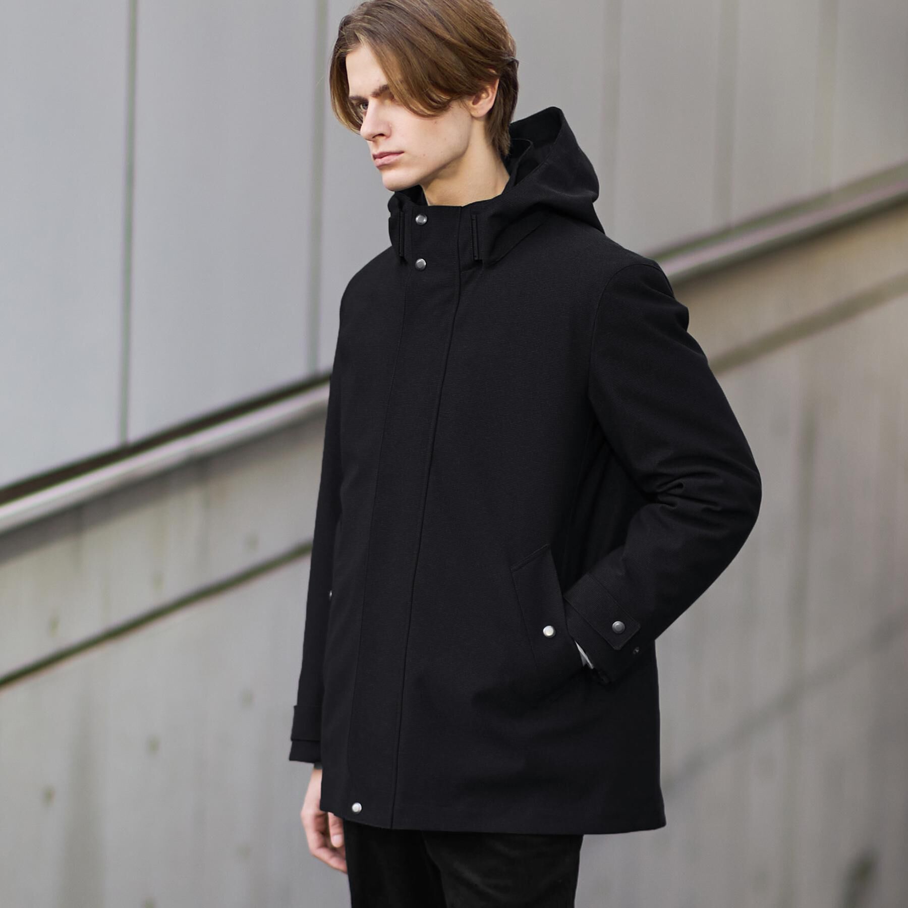 【デザインポイント】リサイクル原料を中心にしたウール混素材を使用。コートスタイルの王道ステンカラーコートは、昨今スーツやジャケパンスタイルだけでなく、インナーにパーカーを合わせてフー.. |