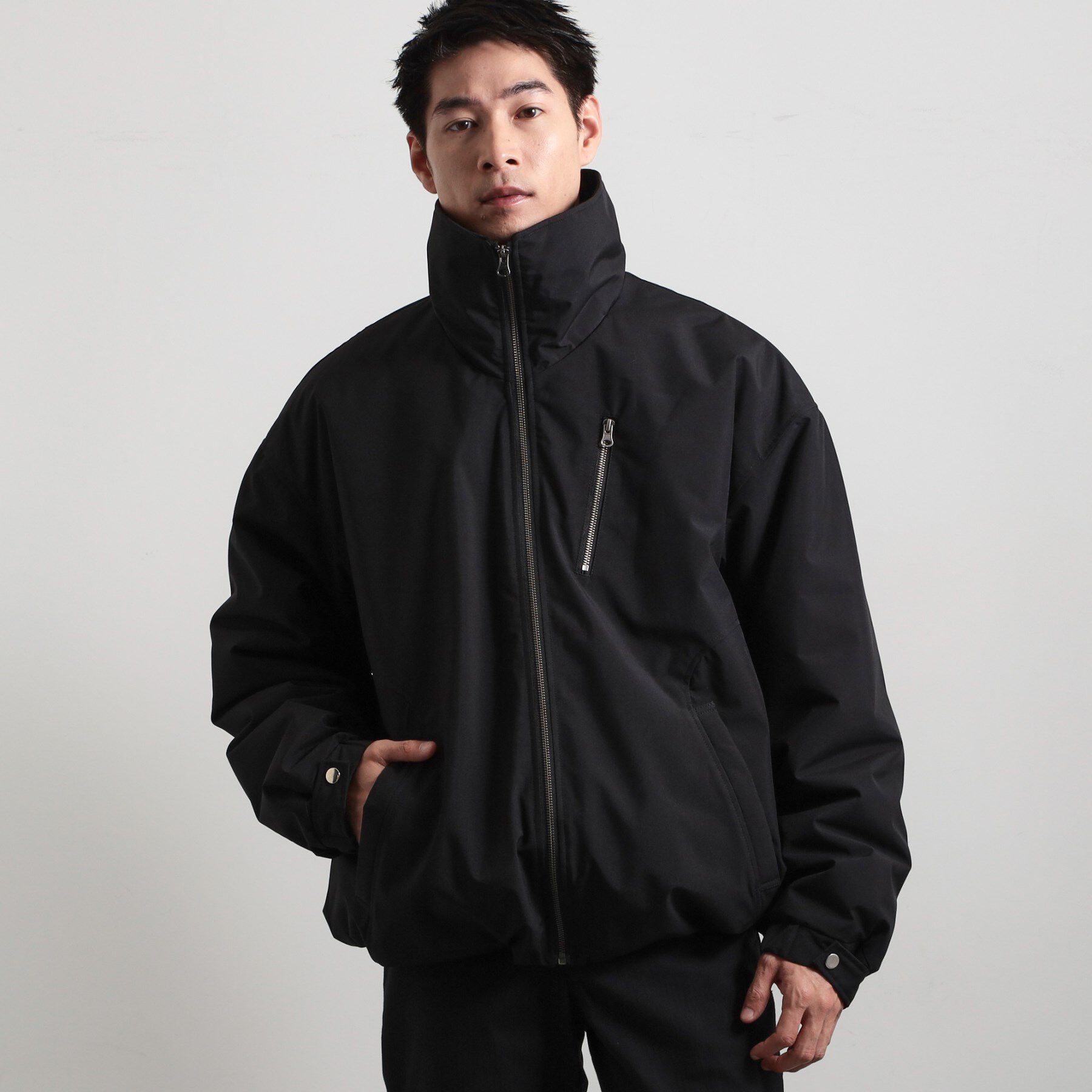 ■ポイント/詳細程よいオーバーサイズシルエットで、抜け感のあるスタイリングが楽しめる薄中綿ブルゾン。衿はスタンド風デザインで、折り返すと内側にあしらったコーデュロイ素材がさりげないアク.. |