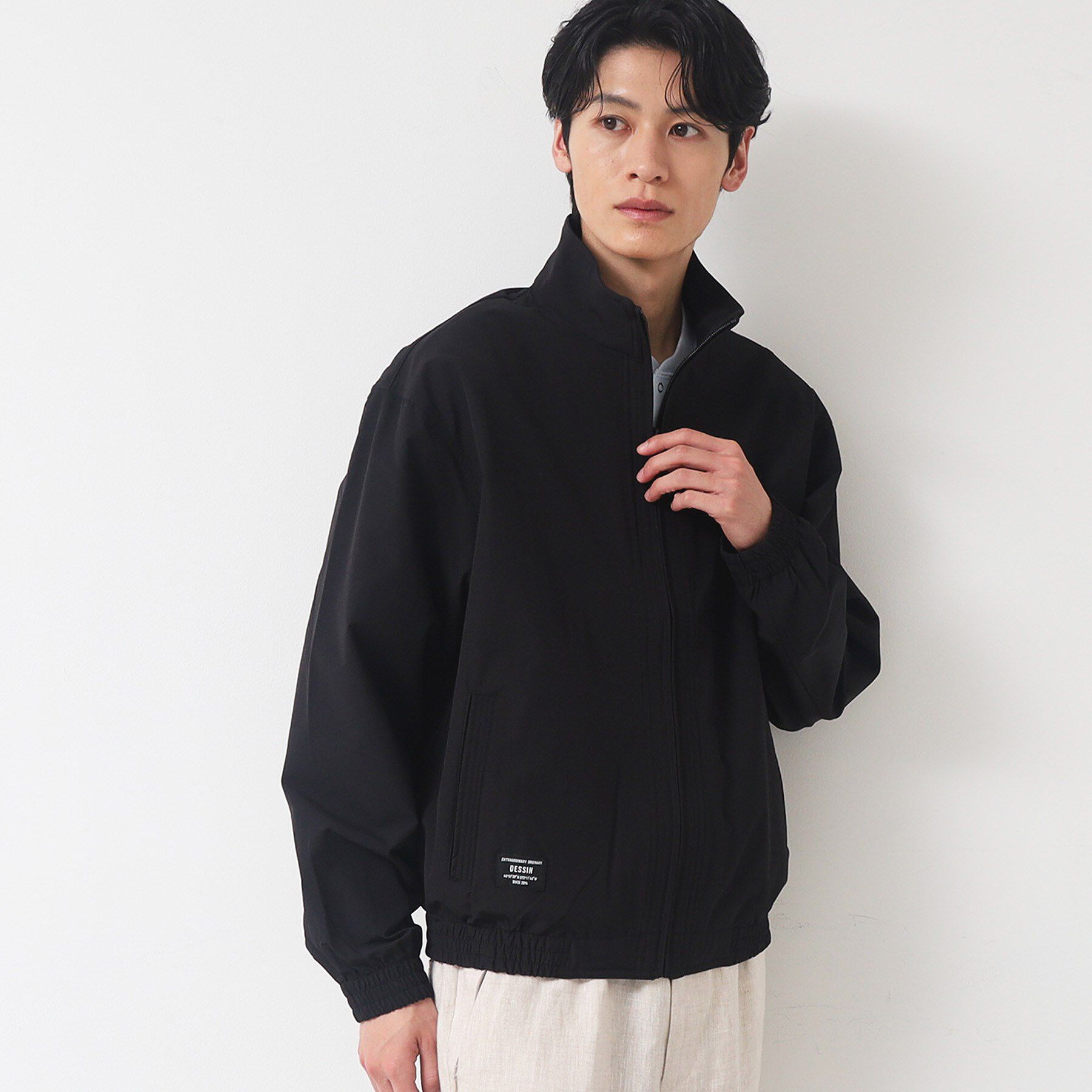 【デザインポイント】ナイロンストレッチ素材を使用したジャケット。少しゆったり目のシルエットで羽織的にも着ていただけます。※ポケット数:前×2 胸元×1 内側×1【スタイリングポイント】同素材の.. |