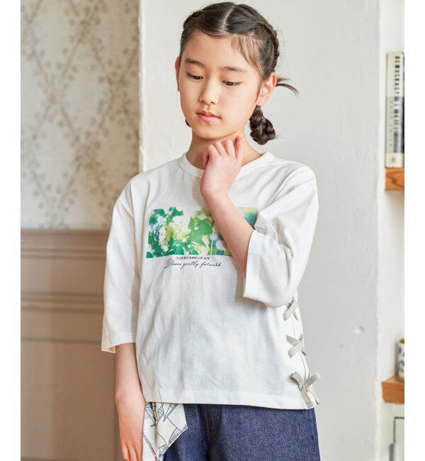 【イッカ/ikka】 【親子コーデ】フォトロゴ脇レースアップ7分袖Tシャツ(120~160cm)