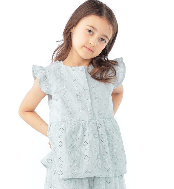 【シップス/SHIPS】 SHIPS KIDS:80〜90cm / レース エンブロイダリー ペプラム ブラウス