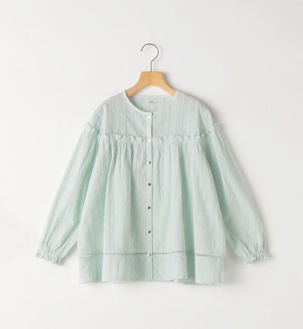 繊細な刺繍とフリルが軽やかな一枚【素材特性】薄手の綿ローンに、繊細な刺繍をストライプ状にあしらった、やや透け感のある素材のブラウス。ふんわり軽く、思わず触れたくなるような繊細さが魅力.. |