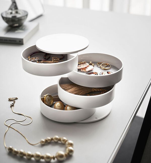 《すぐ取り出せる回転式》必要な段をスライドさせれば使いたいアクセサリーをすぐ取り出せる便利なデザインのアクセサリートレー。大切なアクセサリーを収納するだけでなく、玄関先の小物類をまと.. |