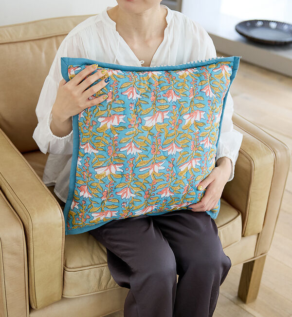 【コレックス/collex】 ブロックプリント キルトクッションカバー 45×45