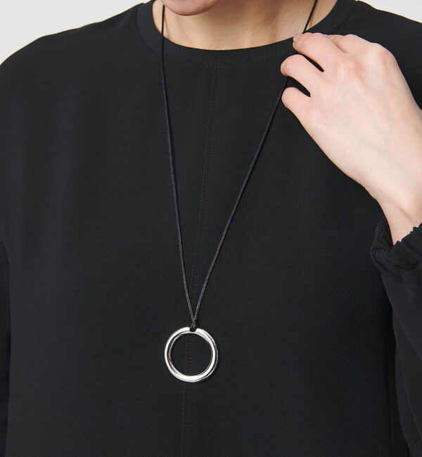 長さのアレンジができるコードネックレス■デザイン艶やかに磨かれたサークルモチーフをトップに配したネックレス。肌当たりの優しいサテンのコードは、スライドパーツで長さの調節ができ襟元のデザ.. |