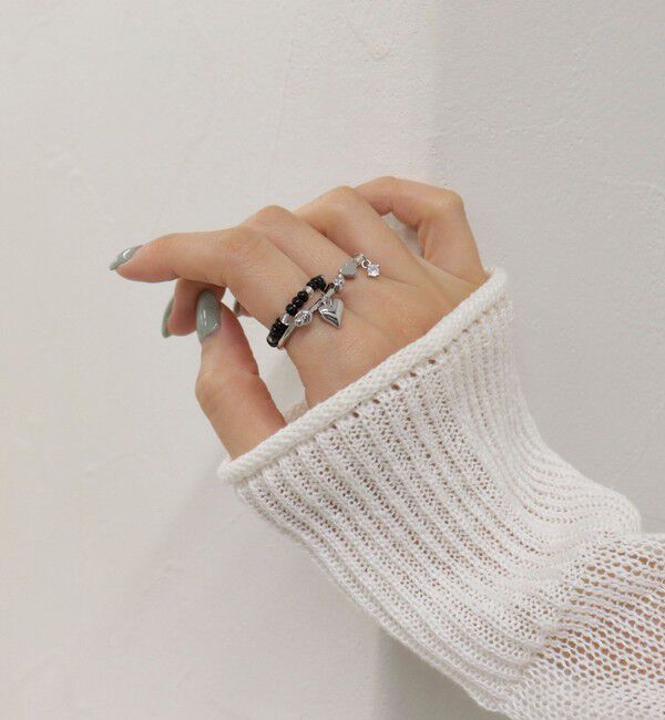 ◇fredy emue◇華やぎを添える2連リング●point・配色が大人可愛いビーズリングとメタル素材のチェーンリングの2本セット・ニュアンス感のあるバイカラービーズが手元を優しく彩り、華奢なメタルチェ.. |