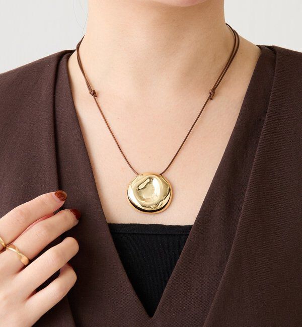 スタイリングのスパイスになるコードネックレス 【POINT】 ・存在感のあるラウンドモチーフのメタルパーツがポイントのネックレス。 ・華奢なコードとメタルパーツの絶妙なバランスがおしゃれ見え.. |