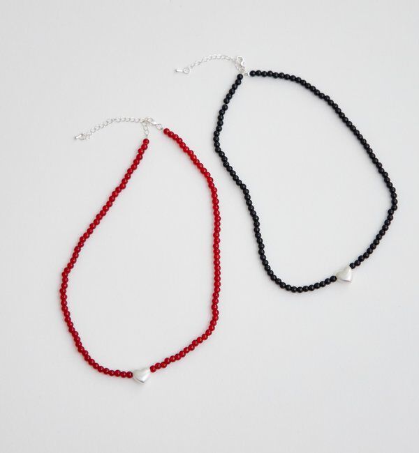 スタイリングにアクセントをプラスしてくれるハートビーズネックレス ●デザイン ・小粒ビーズを重ねた華奢なデザインが、首元にすっと馴染みます。 ・中央のハートモチーフがさりげないアクセント.. |
