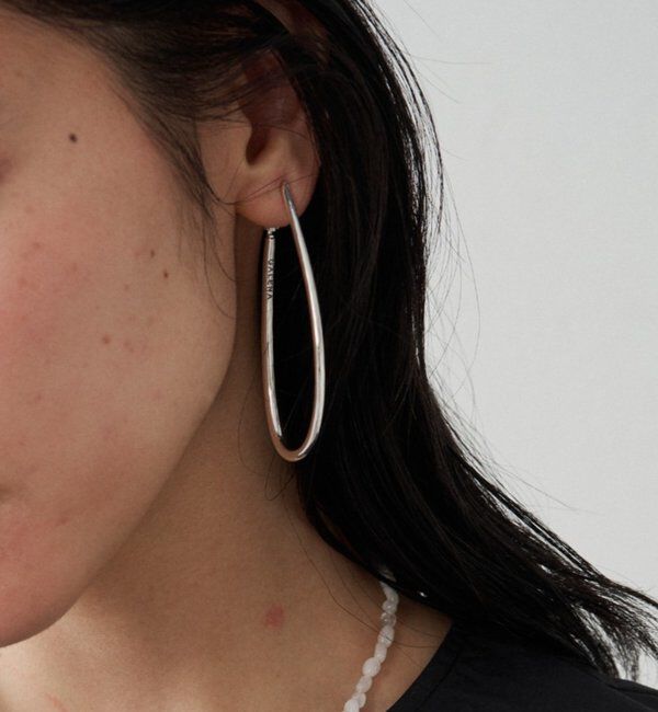 揺れるたびに、視線を奪う。ドロップイヤリング ■デザイン ドロップ型の大振りフープイヤリングは、前から見るとピアスをつけているようなシンプルな仕様にしています。 線径の太さを箇所によって.. |