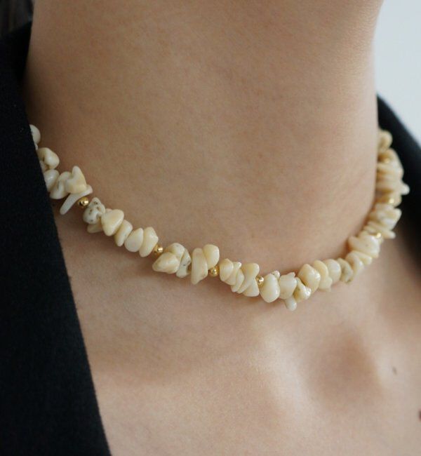 ナチュラルな風合いが魅力のチョーカーネックレス ■デザイン 不規則な形のビーズと小さなゴールドビーズを組み合わせたネックレス。 合わせやすいオフの1色展開。 ■コーディネート 合わせるだけ.. |