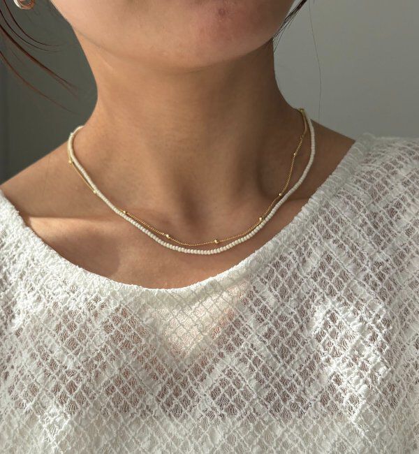 ビーズとチェーンの2SETネックレス 小さなメタルボールが付いた華奢なチェーンネックレスと、 ビーズネックレスがセットになったアイテム。 2つともスライドビーズで長さの調節が可能。 セット付.. |