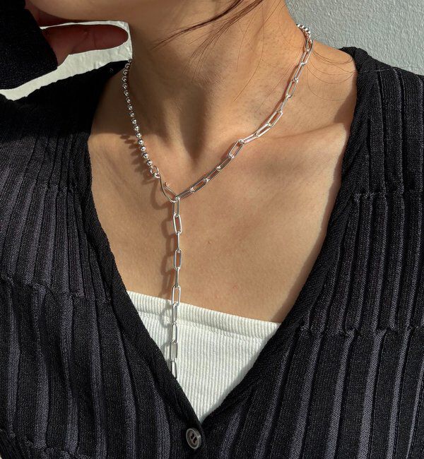 メタルカラーの輝きが華やかで、さりげなく存在感のある1点 ボールチェーンとスリムなチェーンが組み合わさったネックレス。 フックで留める仕様で着脱のしやすさも◎ ホックを前に持って来てY字.. |