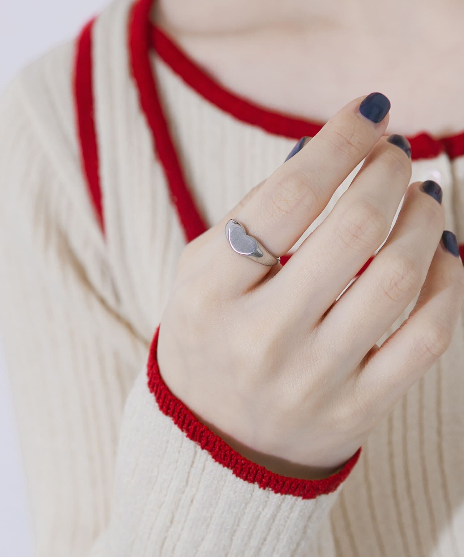【手元に愛らしいスパイスを】●シグネットリングをキュートなハート型でモダンに●甘さを抑えたメタルの質感とフラットな表面●肌に優しく錆びにくいサージカルステンレス素材クラシカルなシグネット.. |