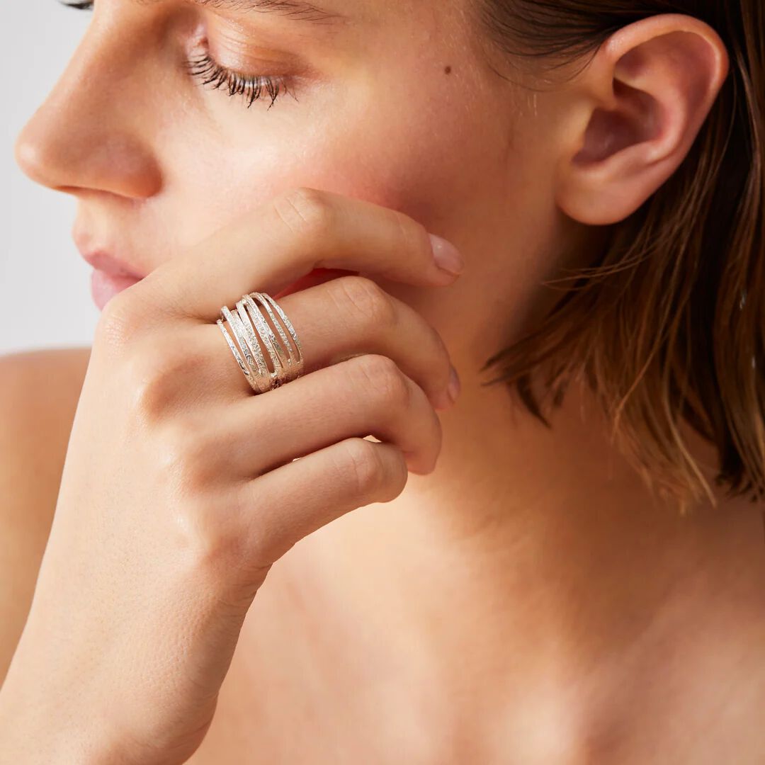 身体をやさしく包むシルクのドレスから型をとったような、ファブリック感が新しいレースのリング。 デザイナーが愛する世界各国のレース模様がこのコレクションのインスピレーション源となっていま.. |