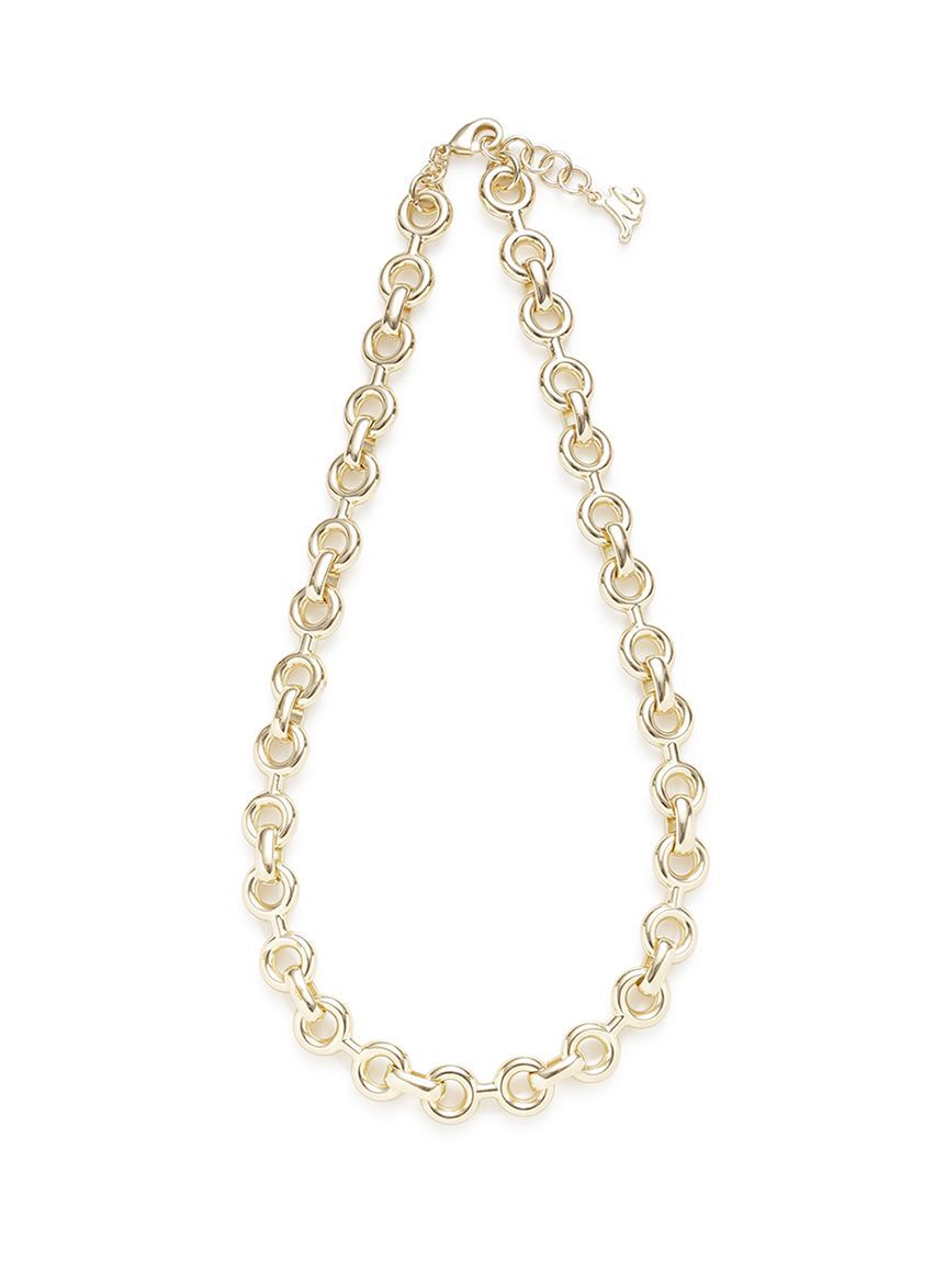 【ユニークなパーツを繋いだ、個性的なチェーン。秋冬スタイルにも映えるボリューム感が◎】【Design/Styling】丸い輪をつなげたような、独特のパーツをチェーン状にした、個性が光るネックレスです.. |