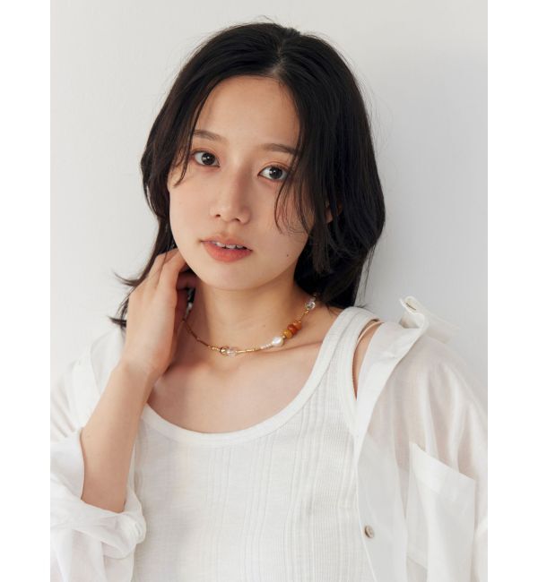 ■デザインコメントヴィンテージエッセンスを表現したストーンパーツのネックレス。ニュアンスピンクの優しい印象の天然石を採用。スタイリングのバランスで長さの調整が可能な仕様になっています。.. |