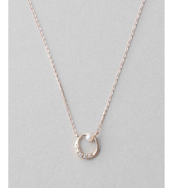 三日月をイメージした、有機的なサークルモチーフのネックレス。ほんのり白い "ミストピンクゴールド" が凛とした佇まいを作ります。月の雫といわれるパールを1粒浮かべて、やわ.. |