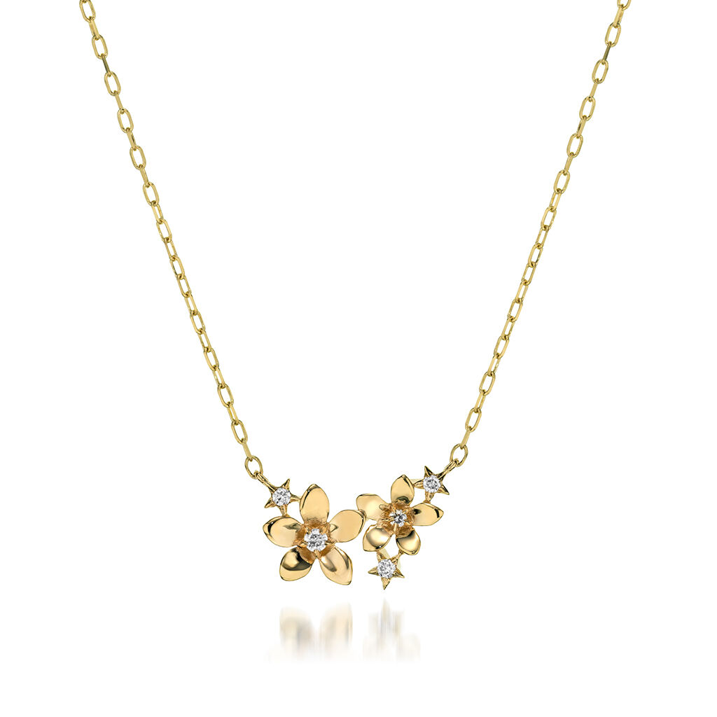 小さな星が集まって咲いたようなブルースターの花をモチーフにした“BLOOMING STAR”ネックレス。 花の中心やその合間には、ダイヤモンドを「星留め」でセッティング。まるで星のブーケを纏っている.. |