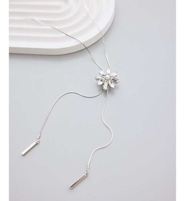 【デザイン・シルエット】・バゲットカットのビジューフラワーがお顔周りをパッと明るく華やかに彩るネックレス。・スライドパーツ仕様により、ネックレスの長さをその日の気分や服装に合わせて自.. |