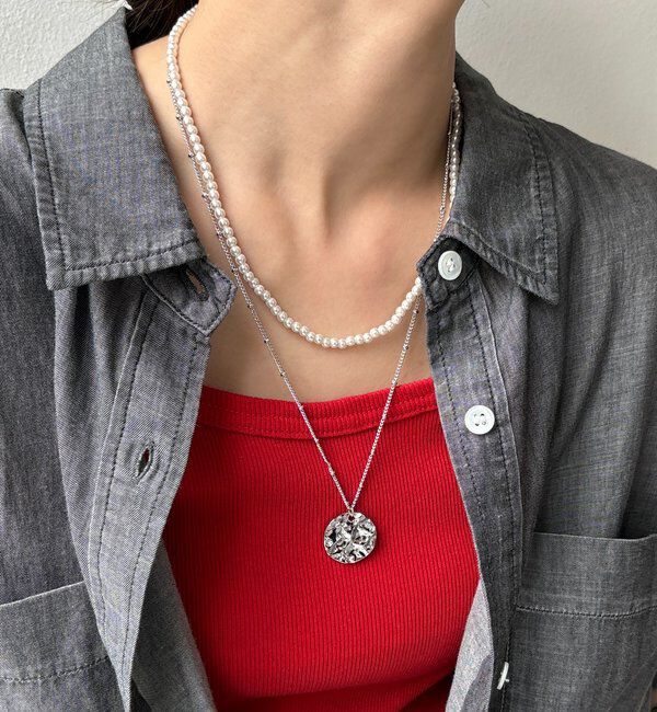 【ドゥドゥ/DOUDOU】 パール×メタルプレートレイヤードネックレス