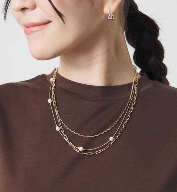 【ビューティーアンドユース ユナイテッドアローズ/BEAUTY&YOUTH UNITED ARROWS】 パールモチーフ×ミックスチェーン 3連 ネックレス