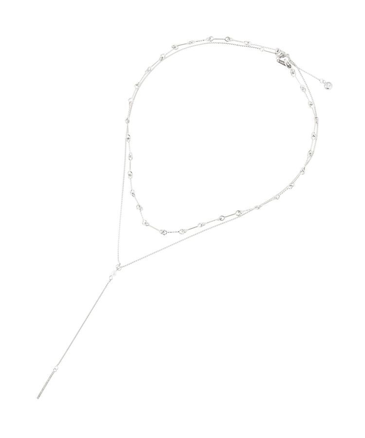 ガラス、パイプ、パール風ビーズをバランスよく組み合わせたステーションロングネックレス。繊細な輝きを放つチェーンが華奢ながら存在感のあるアクセントをプラスします。アジャスター付きでお好.. |