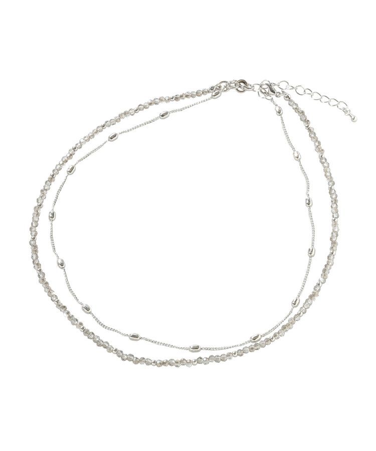 きらめきを重ねる上品2連デザイン。繊細にカットされたガラスビーズと華奢なチェーンを重ねた2連ネックレスです。光を受けるたびにさりげなく輝き、顔まわりを明るく見せてくれます。細身のライン.. |