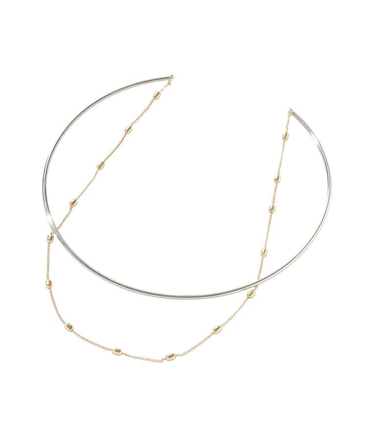 凛と輝く、洗練レイヤードチョーカーメタルのチョーカーに繊細なチェーンを重ねたデザインが、首元を美しく引き立てます。程よい存在感がありながらも上品にまとまり、いつものコーデにさりげない.. |