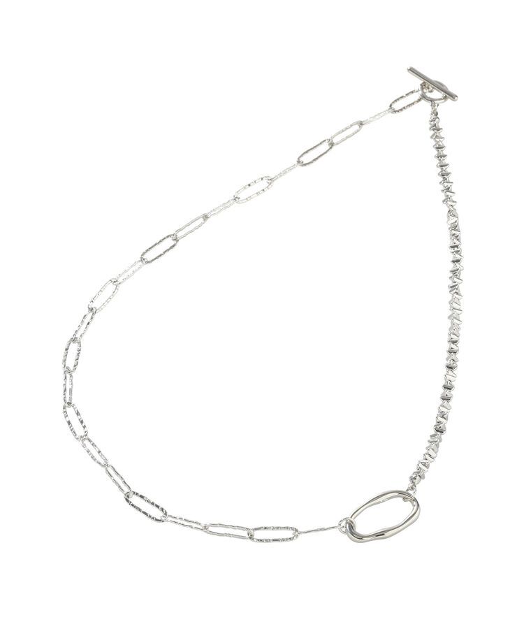 上品な存在感を放つオーバルチェーン。異なるチェーンをつなぎ合わせたデザインが目を引くネックレスです。程よいボリュームのオーバルモチーフがアクセントとなり、首元に立体感と華やかさを添え.. |