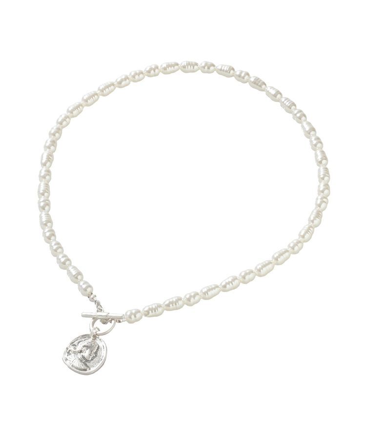さりげない輝きで、コーデに上品な表情を添えるやわらかな艶感のバロックパール風デザインが、首元に優しい印象を与えます。そこにコインモチーフをプラスすることで、甘さの中に程よい大人っぽさ.. |