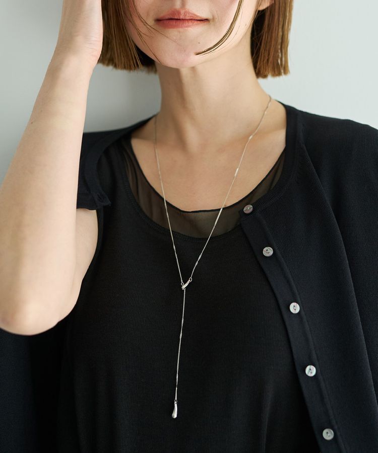 しずくの輝きで、縦ラインを美しくなめらかなドロップパーツが洗練された印象を与えるネックレス。スライド仕様のラリエットデザインにより、長さやバランスを自由に調整でき、その日の装いやシー.. |