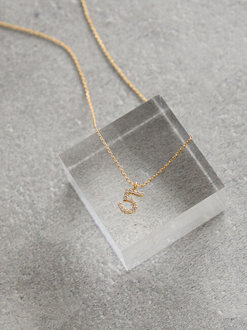 煌びやかなビジュー調が施されたナンバー「5」のネックレス。細めのチェーンで首元に華奢な印象を演出します。アジャスター付きなので、お好みのサイズに調整できるのもポイント。いつものコーディ.. |