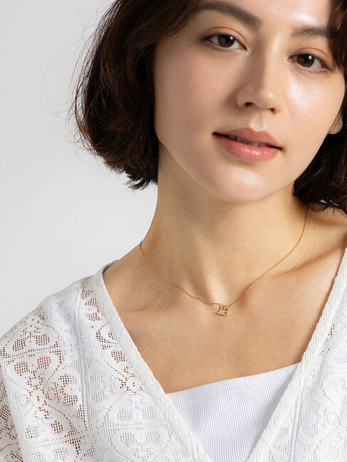 キラキラとしたビジュー調が輝きを放つナンバーネックレス。細めのチェーンで首元に華奢な印象を演出します。留め具部分はアジャスターが付いているので、お好みのサイズで着用できるのもポイント.. |