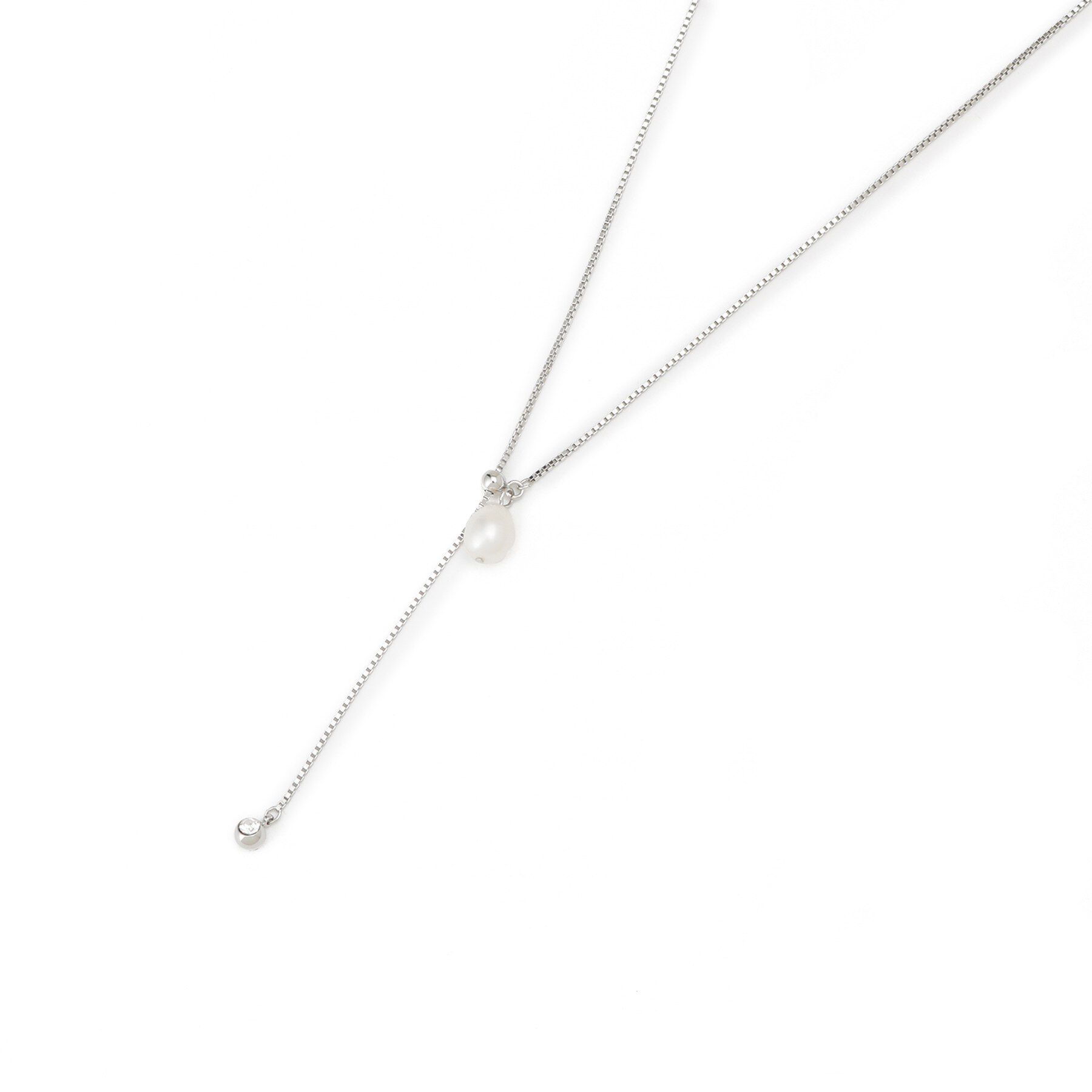 【デザイン】縦のラインがデコルテを美しく見せるYラインのネックレス。中心のスライドボールで長さを自在に調整でき、ネックラインに合わせて表情を変えられます。中央には淡水パールのトップを配.. |