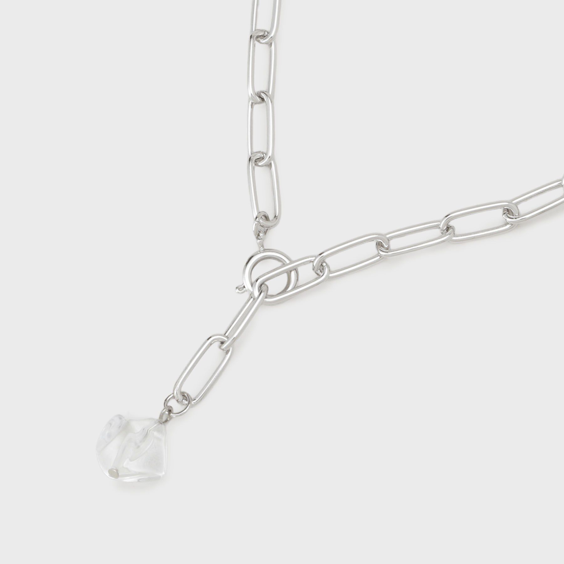 Design Point個性的なリンクデザインが印象的なネックレス。シンプルな装いにアクセントを加え、洗練された雰囲気を演出。クリアチャームがさりげなく輝き、遊び心をプラスしています。留める位置.. |