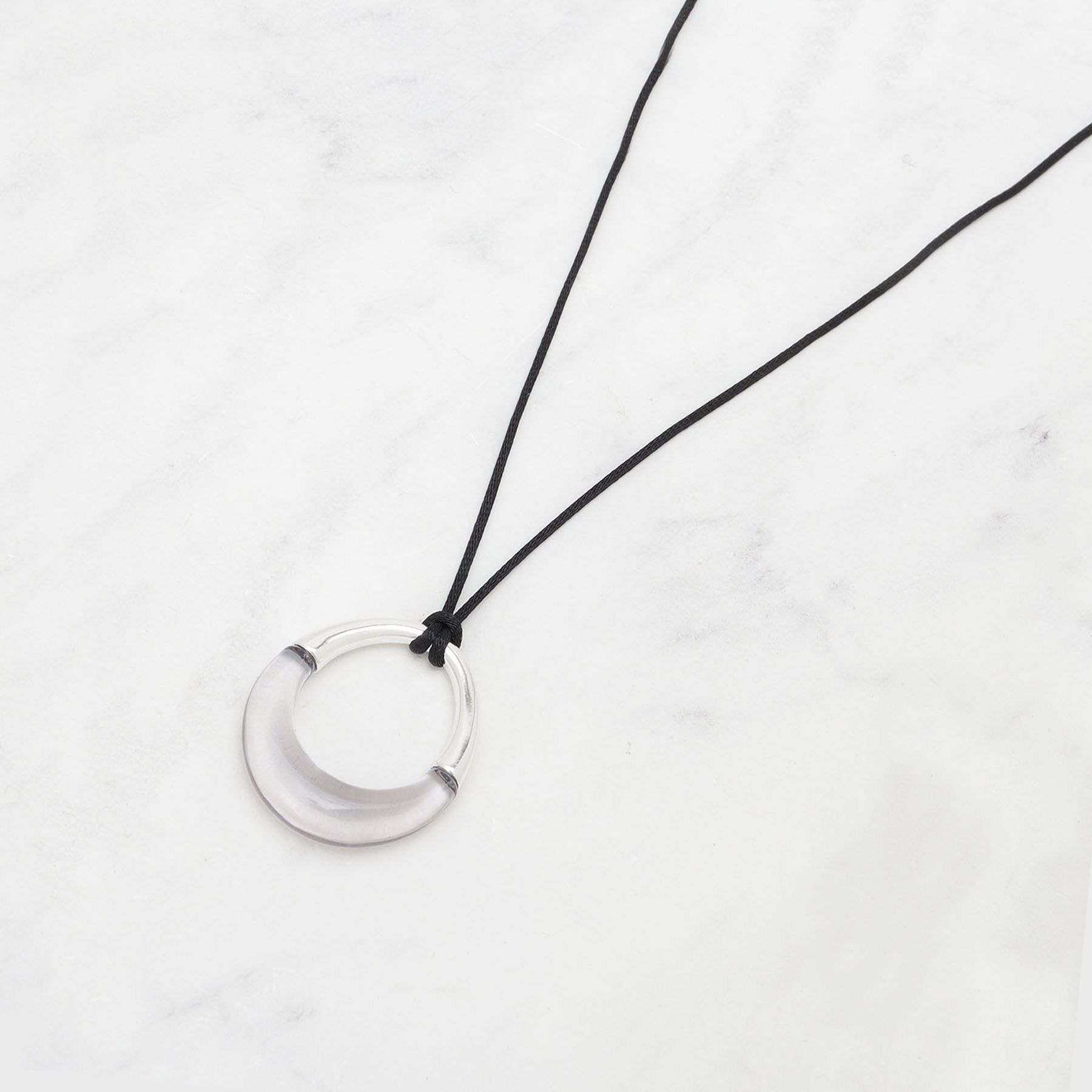 【デザインポイント】シンプルなサテンコードを二重にして仕上げた存在感のあるネックレス。コードの先端には小さなドロップ型のメタルパーツをあしらい、ミニマルながらも洗練された印象を与えま.. |