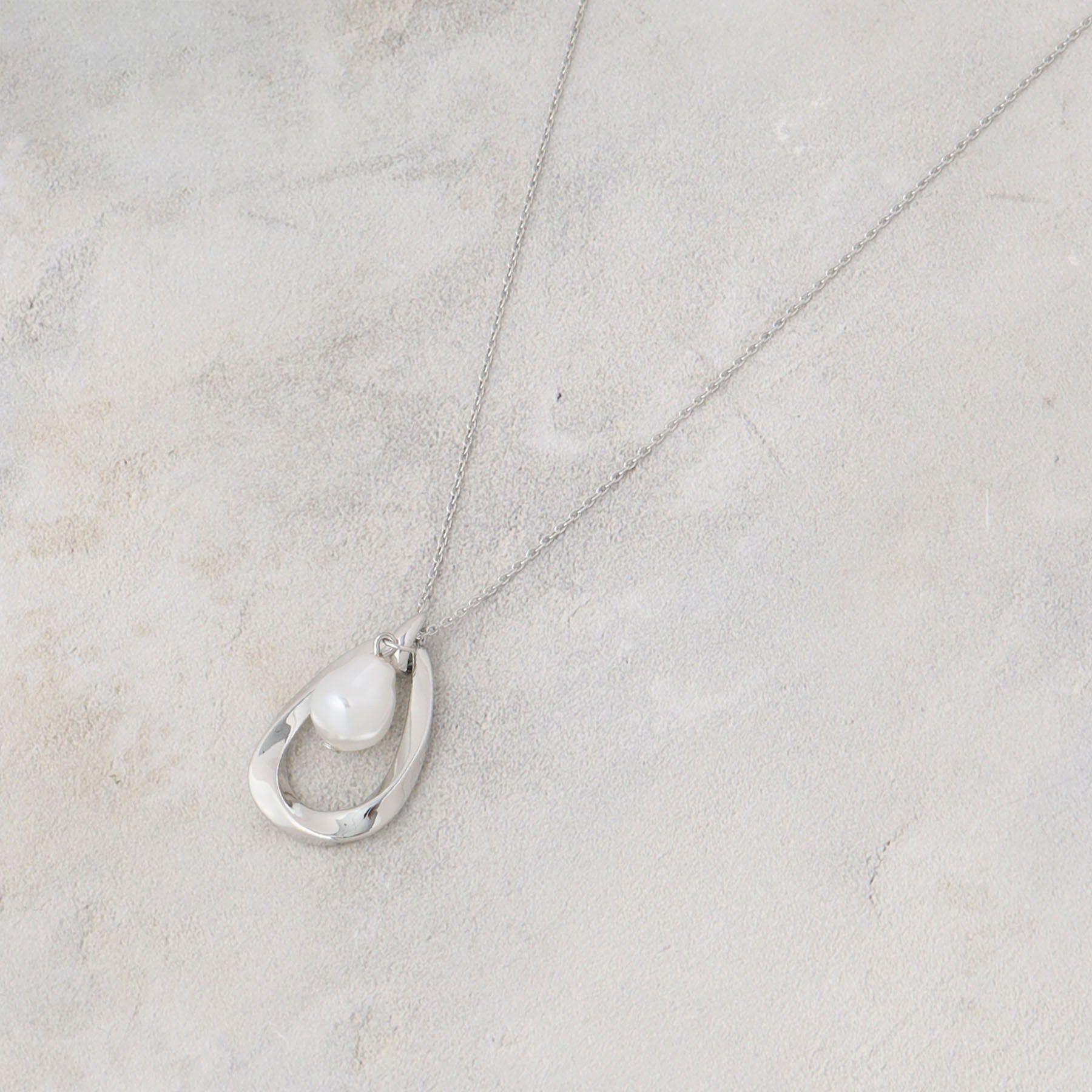 【オペークドットクリップ/OPAQUE.CLIP】 大ぶりメタルしずく×フェイクパール ネックレス