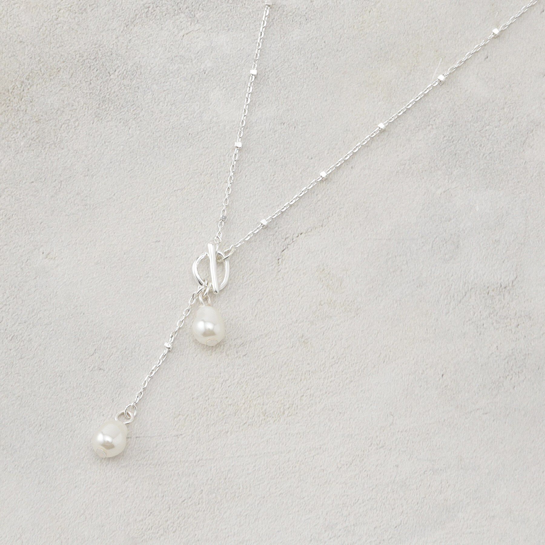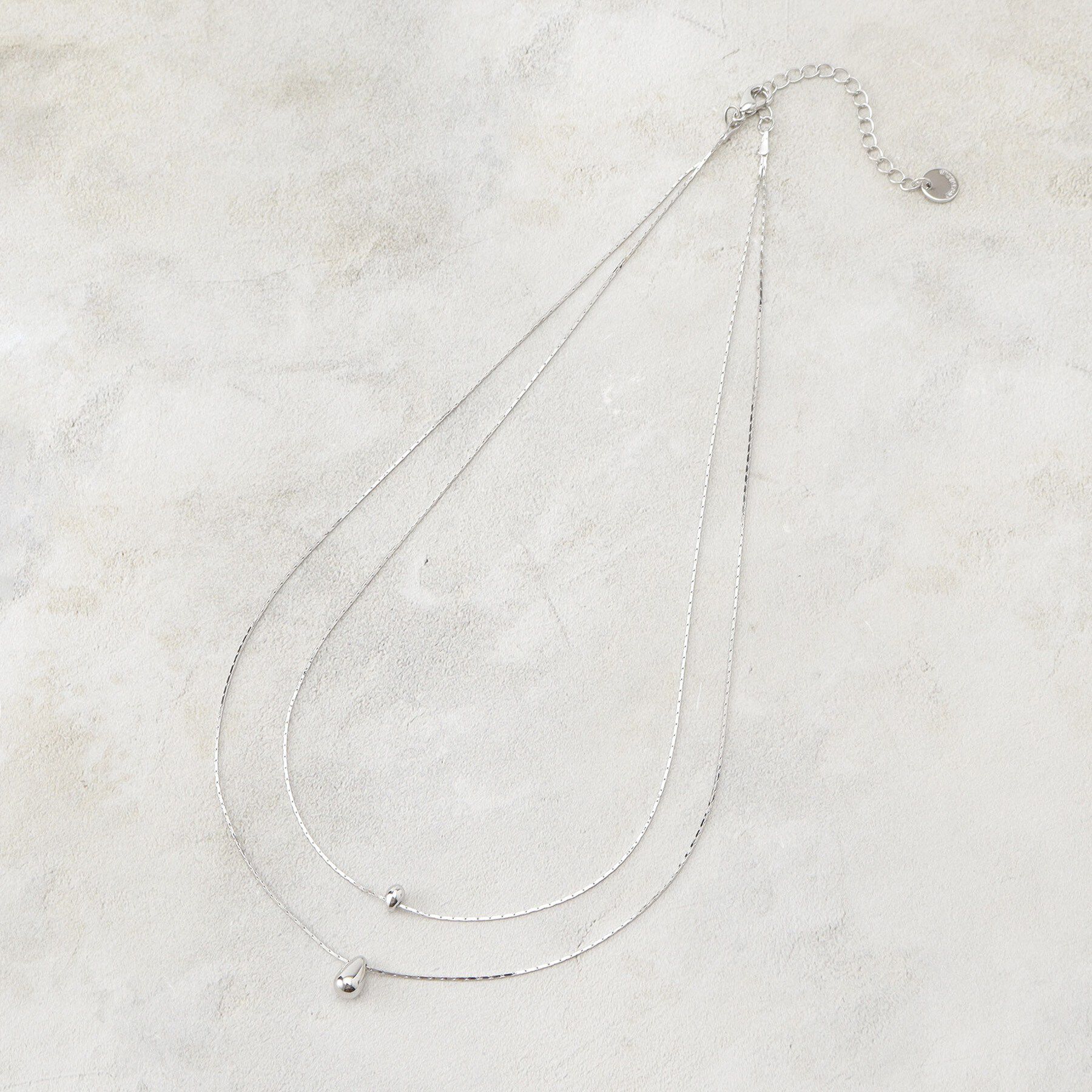 洗練されたしずくモチーフがポイントのネックレス【デザイン】しずくモチーフを配した二連のレイヤードが、首元に上品な縦の視線を作るデザイン。細身のメタルチェーンと繊細な光沢が軽く揺れ、洗.. |