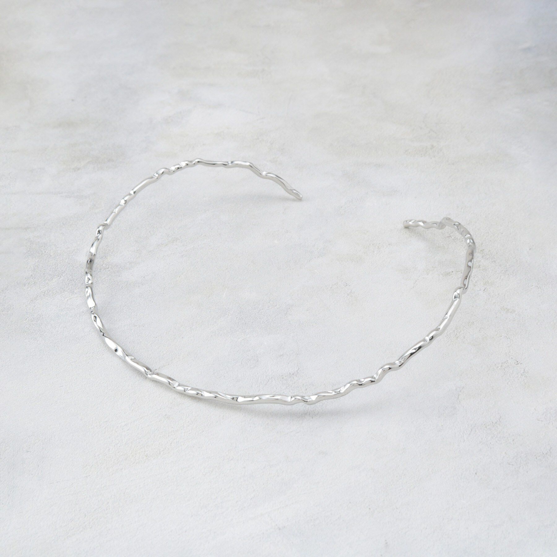 トレンドのニュアンスデザインネックカフ【デザイン】どんなコーディネートにも合わせやすいシンプルなネックカフです。シンプルなデザインながらも、首元を華やかに見せてくれるアイテム。※照明の.. |