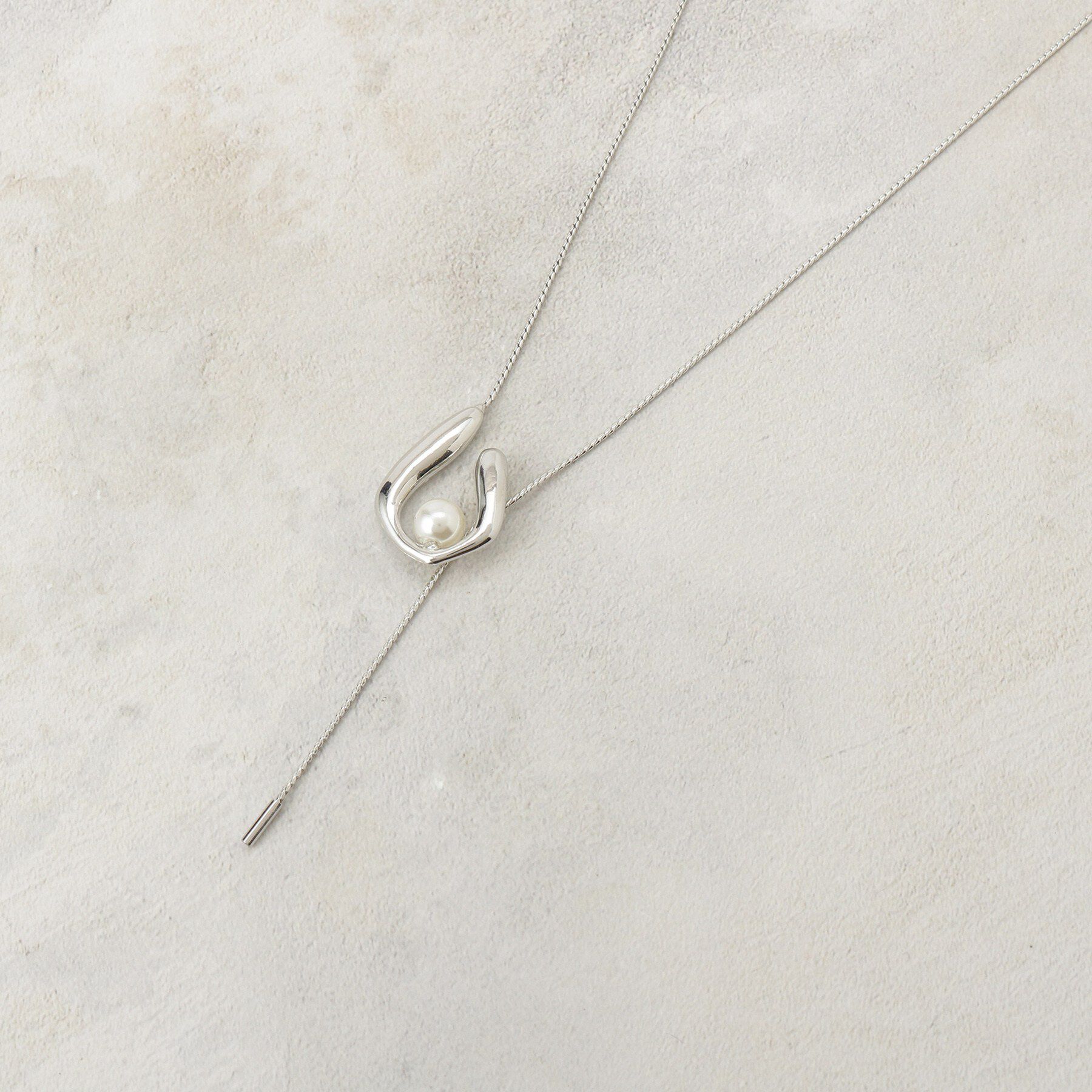【オペークドットクリップ/OPAQUE.CLIP】 U字メタル×フェイクパール ロングスライドネックレス
