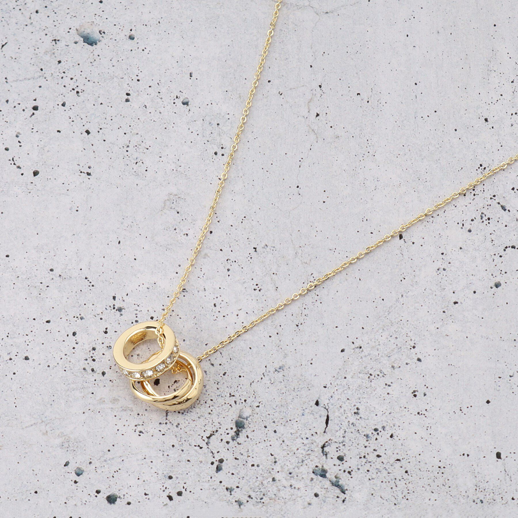■ポイント/詳細上品なリングモチーフにビジューを埋め込んだダブルリングネックレス。メタルとビジューの輝きが胸元を華やかに演出します。普段使いにはもちろん、ビジネスでもお使い頂きやすいデ.. |