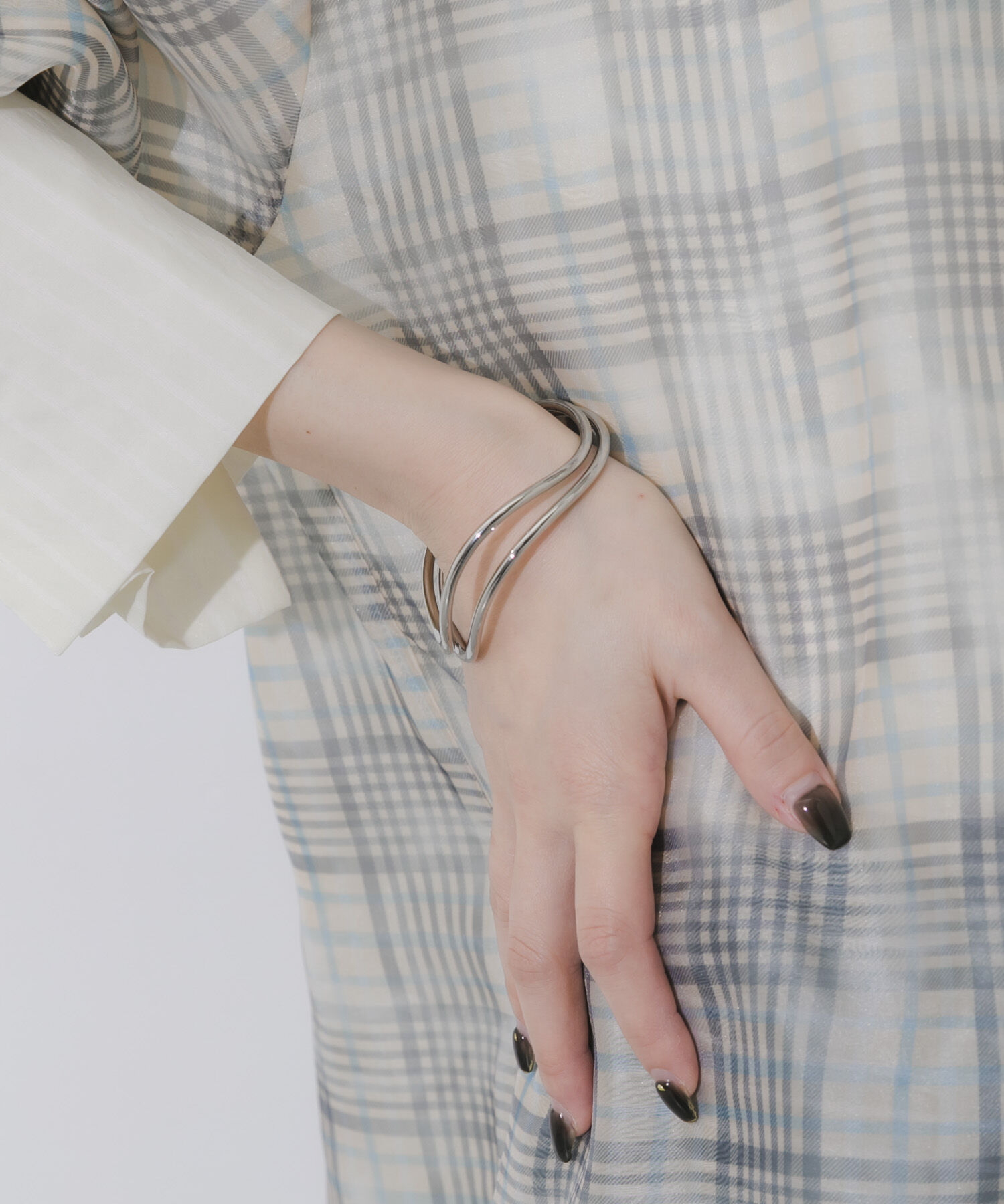【手元に洗練された曲線を描く】●2本のラインが重なり合うようなフォルム●長袖の上からでも映える程よいボリューム●コーディネートをモードに引き締め滑らかな曲線を描くメタルラインが手首を包み.. |