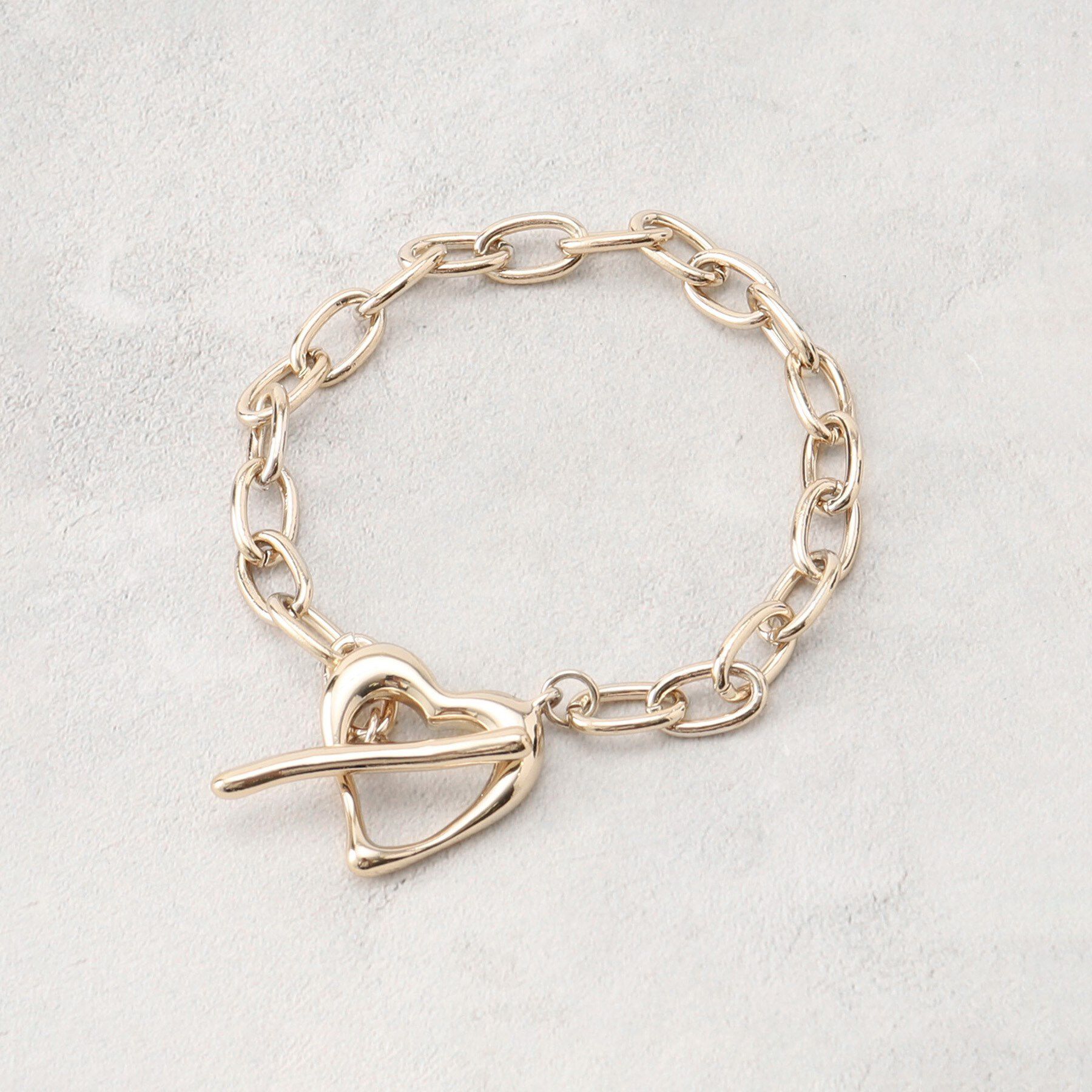 ハート型のマンテルパーツがポイントのブレスレット。【デザイン】適度なボリュームがスタイリングのポイントになるチェーンブレスレット。ハート型のマンテルパーツがかわいらしい印象です。シン.. |