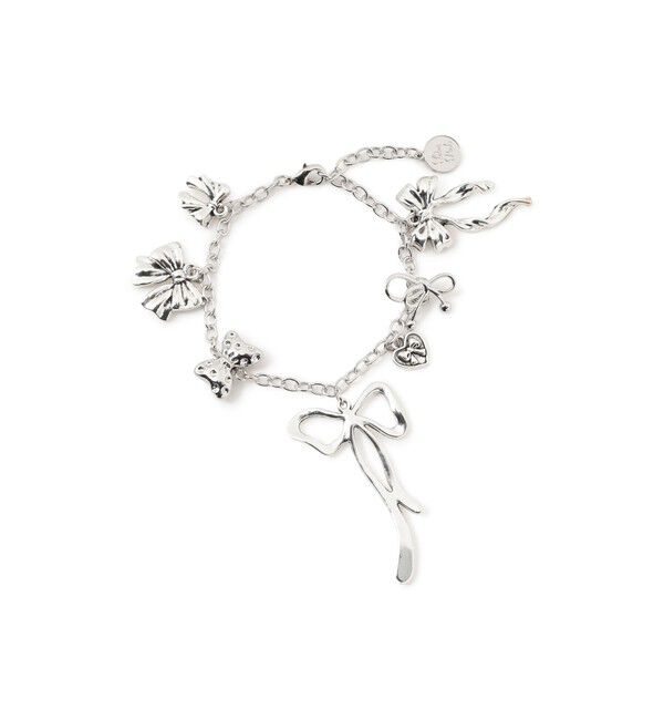 ■デザイン多彩なフォルムのリボンチャームをふんだんにあしらったブレスレット。 1つひとつのモチーフが異なる表情を見せます。ヴィンテージライクなシルバーの質感が、甘くなりすぎない絶妙な大人.. |