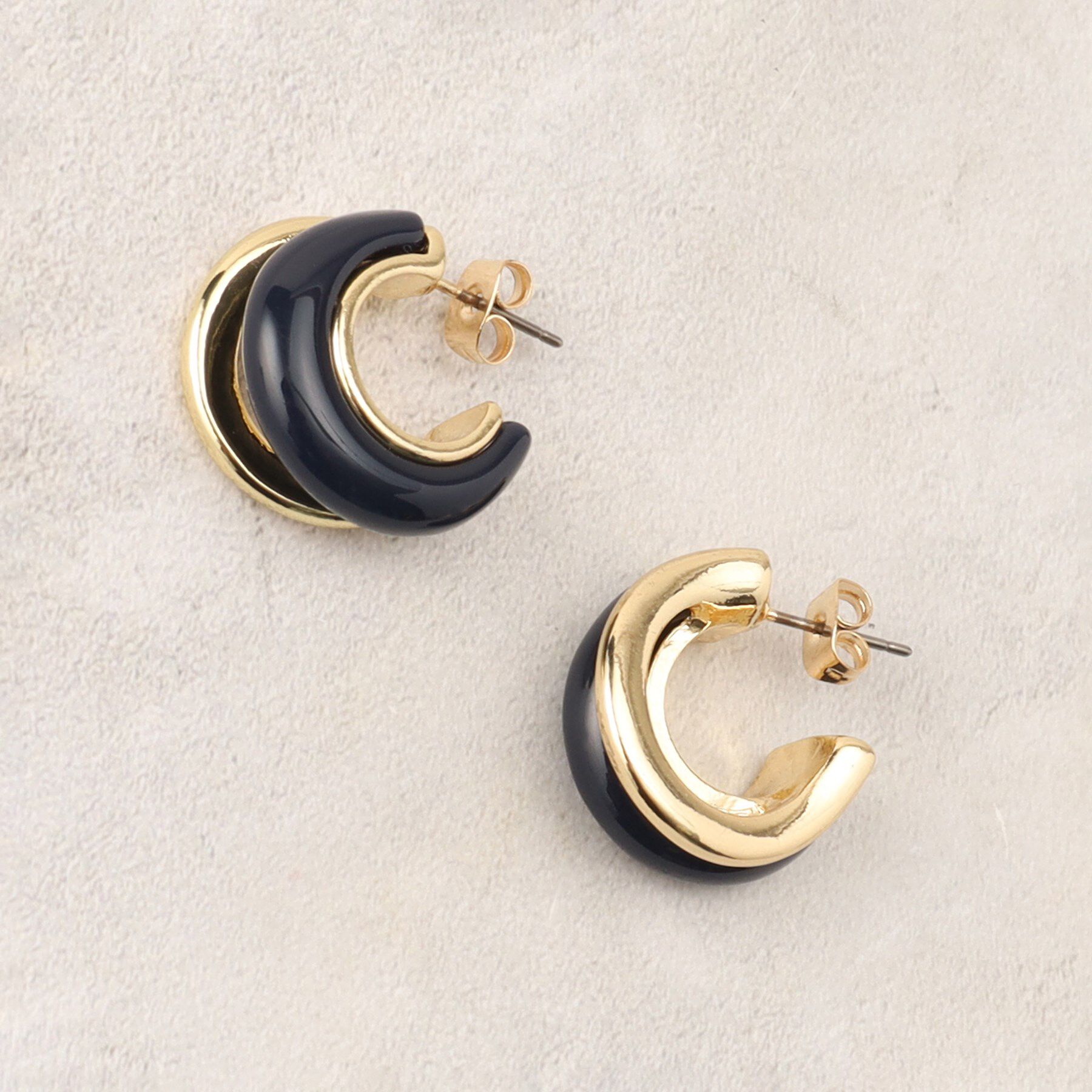 カラーエポとメタルを掛け合わせた2連のピアス【デザイン】こっくりしたカラーがこれからの時期にちょうど良い、カラーエポとメタルを組み合わせたピアス。シンプルながらも色鮮やかなエポがアクセ.. |