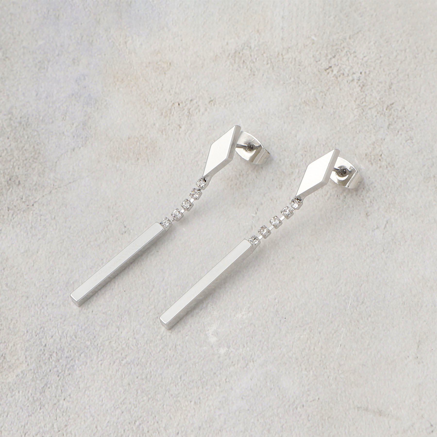 メタルとビジューを組み合わせたきれいめピアス【デザイン】ダイヤシェイプのメタルとビジューが縦に連なるフォルムで、顔周りを上品に引き締めます。【着こなしポイント】アップヘアやVネックで首.. |