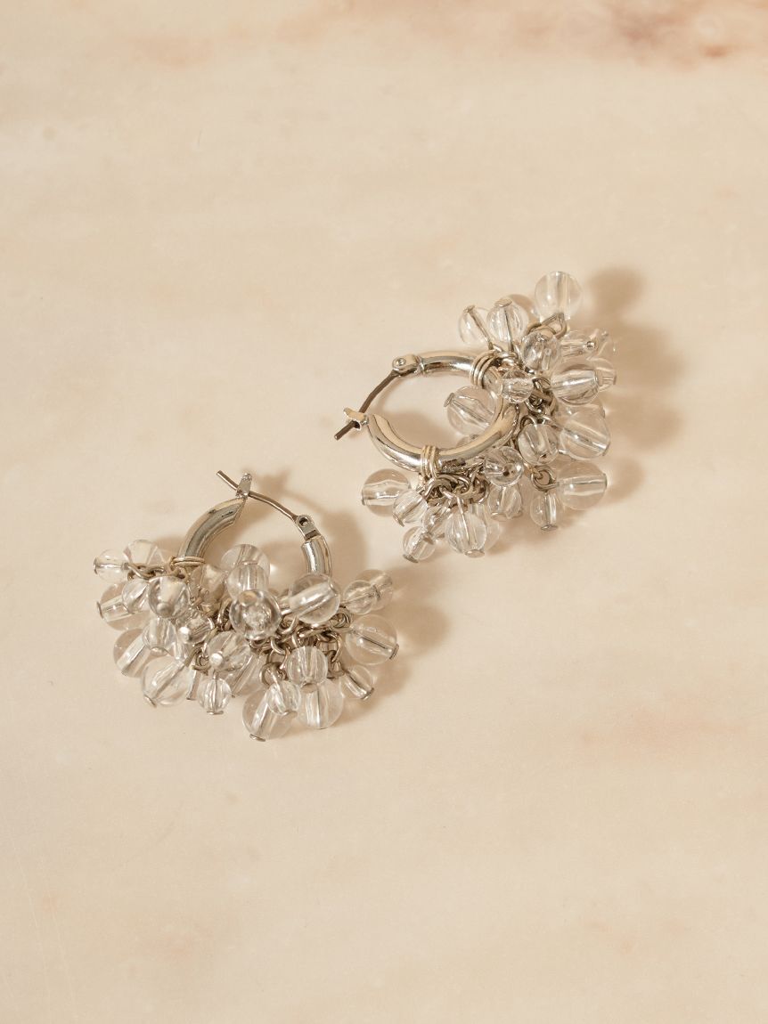 【顔まわりを一気に華やかに彩るビーズピアス】【Design/Styling】たっぷりとビーズをあしらった、存在感のあるピアスです。動くたびにきらめき、顔まわりを一気に華やかな印象に。シンプルなコー.. |