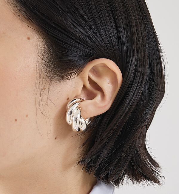 【立体的なカーブシルエット】幅広いメタルラインを重ねた丸みのあるデザインが女性らしい印象のイヤリング。小ぶりながらも程よいボリュームで、華やかさをプラスしてくれるアイテムです。※メッキ.. |